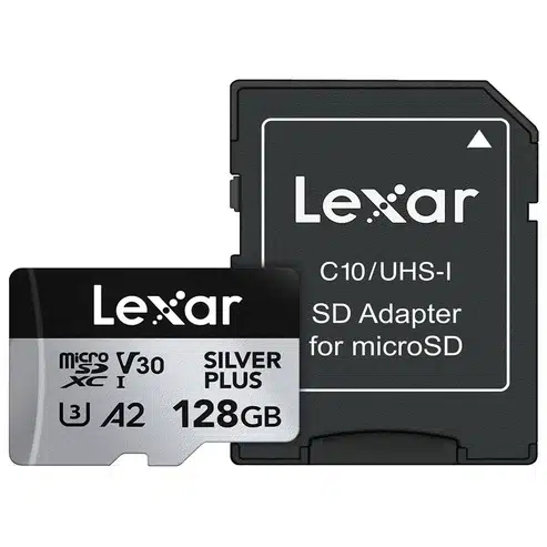 Lexar Silver Plus 128GB Micro SD Card Up to 205MB/s Read, 150MB/s Write, microSDXC UHS-I U3 V30 A2 Class 10 with Adapter, 4K UHD Memory Card