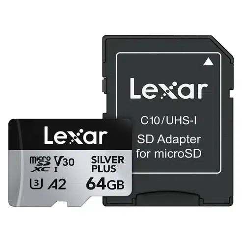 Lexar Silver Plus 64GB Micro SD Card Up to 205MB/s Read, 150MB/s Write, microSDXC UHS-I U3 V30 A2 Class 10 with Adapter, 4K UHD Memory Card