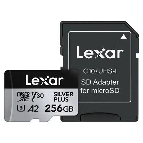 Lexar Silver Plus 256GB Micro SD Card Up to 205MB/s Read, 150MB/s Write, microSDXC UHS-I U3 V30 A2 Class 10 with Adapter, 4K UHD Memory Card