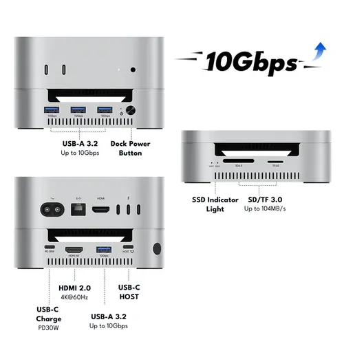 - 10-in-1 Dual SSD 10Gbps Dock