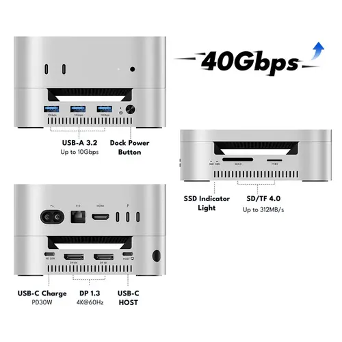 The Acasis M001Pro Mac mini M4 Dock is a powerful and versatile Thunderbolt 4 docking station designed specifically to complement the Mac mini. Featuring ultra-fast 40Gbps Thunderbolt connectivity, it significantly expands your device’s capabilities while maintaining a sleek, space-saving footprint that perfectly matches the Mac mini design.