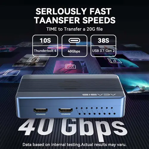 The Acasis TBU405Max 8-in-1 Thunderbolt Dock combines high-speed data transfer, display expansion, and NVMe storage in a single compact solution. Leveraging a 40Gbps Thunderbolt 4/USB4 interface, it delivers fast connectivity and expanded functionality for modern laptops and desktops with Thunderbolt support.