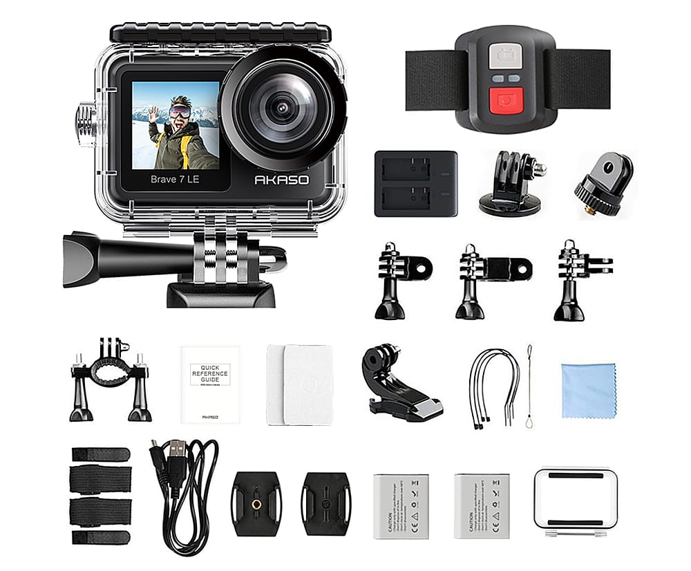| Others: | Six-axis Image Stabilization (EIS 2.0), Hands-free Voice Control, Time Lapse, 3x Zoom, Smart Remote Control with Screen, External Mic Supported, AKASO Go App with Video Editing Features |