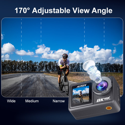 The Ausek AT-M86TR 8K Action Camera is a feature-packed waterproof sports cam designed for adventurers and content creators who demand ultra-high-definition video and rugged performance. Equipped with a powerful 8K CMOS sensor, it captures incredibly detailed footage at 15fps and also supports a variety of resolutions including 4K at 30fps and 1080p at 60fps for smoother playback. The wide 170° angle lens ensures an immersive view, perfect for capturing fast-paced sports, travel scenes, and underwater action.