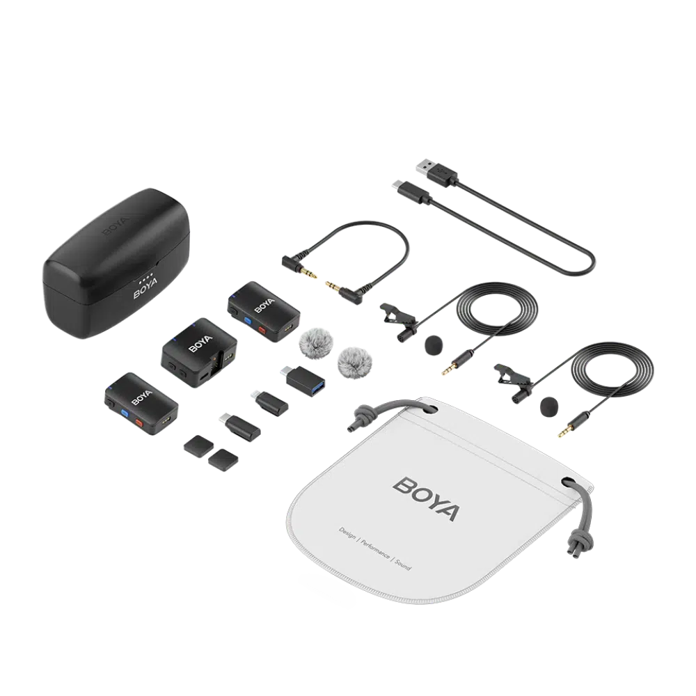 The system includes 8 GB internal storage, capable of storing over 15 hours of 24-bit audio. You can also export recordings easily via USB-C and rely on real-time 3.5 mm monitoring for instant feedback. Whether you’re streaming live or recording in post, the AMOLED touchscreen and BOYA Central app allow you to control gain, EQ, noise suppression, and more—right at your fingertips.