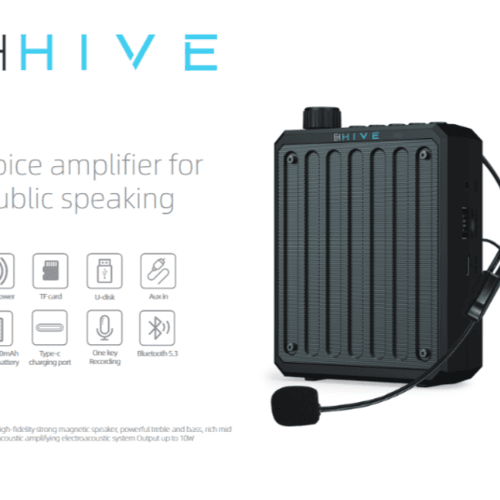 The Hive M300 Voice Amplifier is a compact yet powerful audio solution designed to enhance voice projection for teachers, tour guides, instructors, presenters, and public speakers. With a 10W output and advanced electroacoustic amplification system, the M300 delivers clear, distortion-free sound that carries effortlessly over large areas — making it ideal for indoor or outdoor speaking engagements.