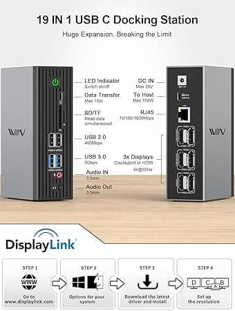Compact, lightweight, and finished in a stylish grey/black design, the IVIIN 19-in-1 USB-C Docking Station is built for portability without sacrificing performance. With wide compatibility across Windows, macOS, and ChromeOS, it’s the ultimate solution for turning your laptop into a full-featured workstation, whether at home, the office, or on the go.