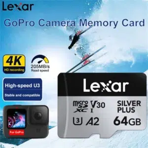 The Lexar SILVER PLUS 64GB Memory Card is designed for high-speed performance and reliable storage, making it an excellent choice for smartphones, tablets, action cameras, drones, and gaming devices. With blazing-fast read speeds of up to 205MB/s, it enables quick file transfers and efficient data access, saving valuable time when moving photos, videos, and apps.