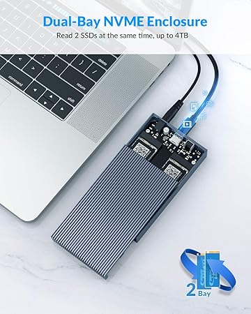 The ORICO M2P2J-C3 Dual NVMe SSD Enclosure is a high-performance M.2 NVMe SSD enclosure crafted for users seeking fast data transfer, reliable durability, and ease of use. Constructed from premium aluminum alloy, this compact and stylish gray enclosure ensures efficient heat dissipation and long-term durability, making it ideal for both professional and personal use. Measuring just 106.6mm x 62mm x 14.9mm and weighing approximately 120g, the ORICO M2P2J-C3 is lightweight and portable—perfect for on-the-go data management. It supports USB 3.1 Gen2 connectivity through a Type-C interface, delivering blazing-fast data transfer speeds of up to 10Gbps, allowing you to move large files, videos, and backups in mere seconds.