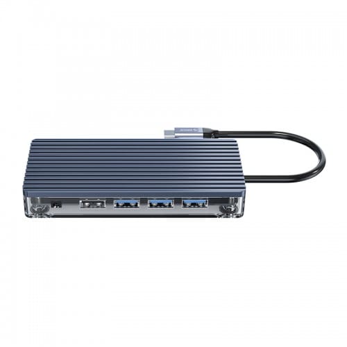 The Orico WB-11P Type-C 11-in-1 Transparent Hub is a powerful and visually striking USB-C hub designed to expand the connectivity of your laptop or tablet. It features a total of eleven output ports, including 3 x USB 3.0 Type-A, 1 x USB 2.0 Type-A, 1 x HDMI, 1 x VGA, 1 x RJ45 Gigabit Ethernet, 1 x USB 3.0 Type-C, 1 x audio jack, and dual card readers (SD and TF).