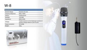 The SHENGFU W-8 VHF Wireless Microphone is a reliable and professional wireless microphone system designed for karaoke, stage performances, public speaking, and events. Featuring VHF wireless technology, it provides stable signal transmission and clear audio performance with minimal interference, making it suitable for both indoor and small stage environments.