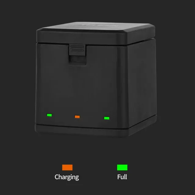 The included charging dock allows you to charge up to three batteries at once, making it highly efficient for on-the-go shooting or extended sessions. The flip-type closed box charger design offers additional safety and convenience, while the USB Type-C port (cable included) ensures modern charging compatibility.