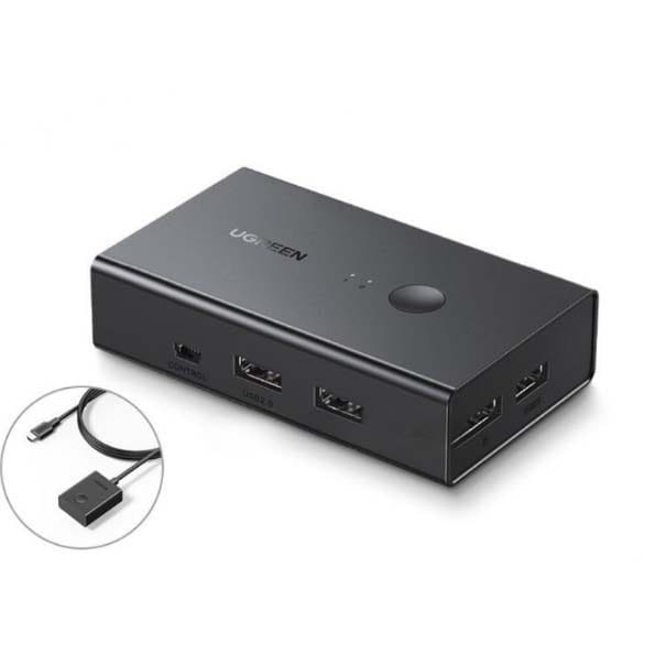 It features UGREEN 90478 HDMI 2-in-1-out KVM Switch two USB 2.0 Type-B input ports and two USB 2.0 Type-A output ports for connecting and sharing USB peripherals such as keyboards, mice, flash drives, or printers across both computers. The plug-and-play design ensures quick and easy setup without the need for software or drivers.