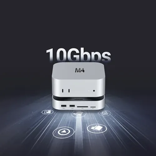 Constructed with a durable aluminum alloy housing, the UGREEN CM841 not only offers efficient heat dissipation but also matches the premium aesthetics of Apple devices. With USB-C power delivery pass-through charging and a compact desktop-friendly design, this docking station is an ideal all-in-one expansion solution for users seeking performance, organization, and versatility from their Mac mini setup.