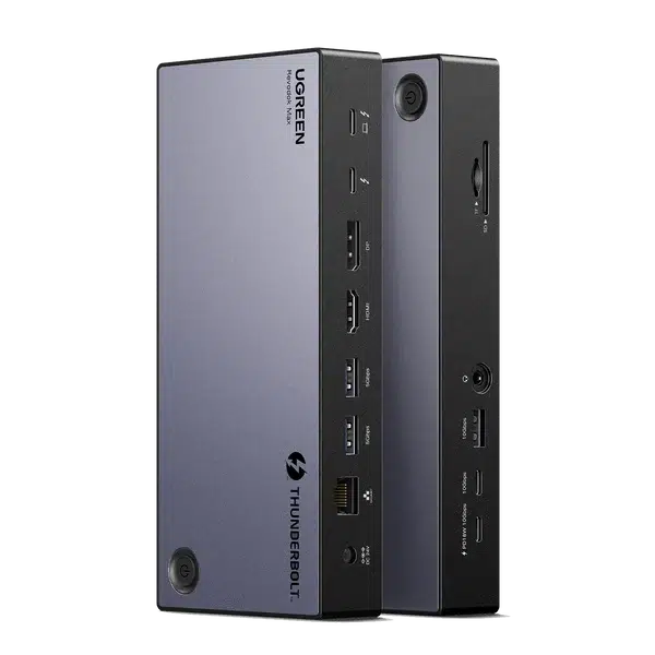 Equipped with an impressive array of ports including USB 3.1 Type-A and Type-C, HDMI 2.1, DisplayPort 1.4, Thunderbolt 4, Gigabit Ethernet, SD card slot, and a 3.5mm audio jack, the UGREEN Revodok Max 313 delivers comprehensive connectivity in a compact form. Whether you need to connect external monitors, hard drives, projectors, or other peripherals, this docking station handles it with ease.