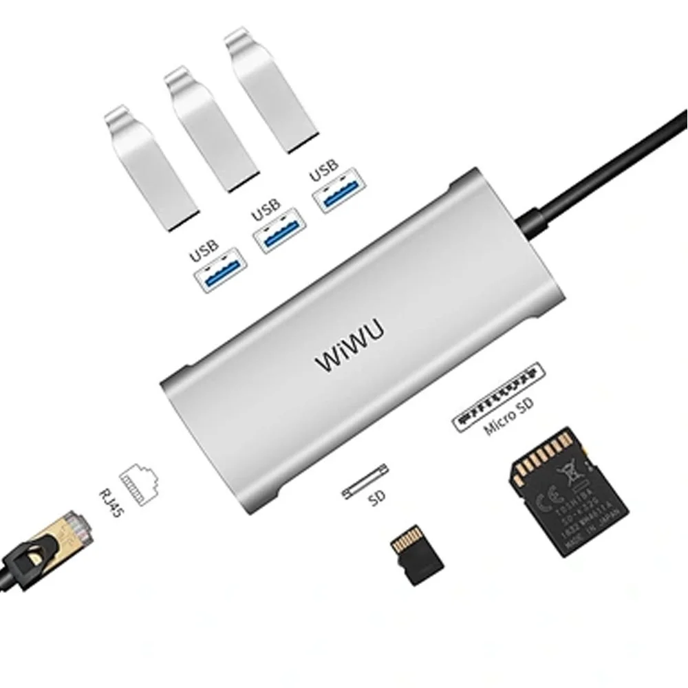 WiWU T9 8-in-1 Unibody Design Aluminum Alloy Type-C Hub