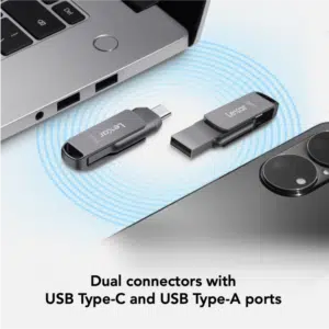 Powered by USB 3.2 technology, the Lexar JumpDrive Dual Drive D400 offers fast data transfer speeds, enabling quick backups of photos, videos, documents, and other important files. Its 64GB storage capacity provides ample space for storing multimedia content and everyday data.