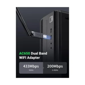 The UGREEN CM496 AC650 USB Wireless Adapter is a compact and high‑performance wireless networking solution designed to bring fast and stable Wi‑Fi connectivity to desktops, laptops, and other USB‑equipped devices. Supporting the IEEE 802.11ac/a/b/g/n Wi‑Fi standard with combined speeds of up to 650 Mbps, it delivers robust performance with up to 433 Mbps on the 5 GHz band for high‑speed tasks and up to 200 Mbps on the 2.4 GHz band for extended range and reliability.