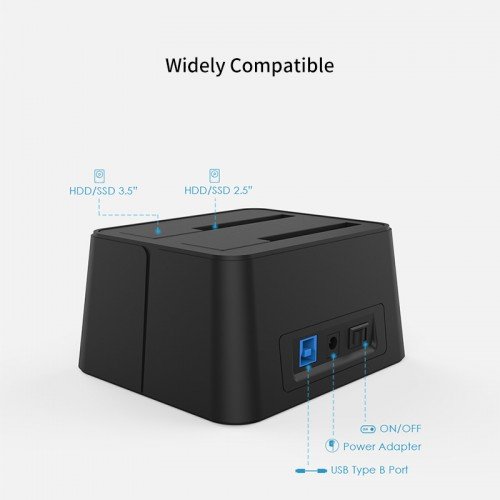 The Wavlink WL‑ST334U USB 3.0 to SATA Dual Bay External Hard Drive Dock is a versatile and high‑capability docking station designed to make accessing and managing multiple internal drives simple and efficient. Supporting both 2.5″ and 3.5″ SATA HDDs and SSDs, this dual‑bay dock offers USB 3.0 SuperSpeed connectivity with data transfer rates up to 5 Gbps, allowing fast file transfers, backups, and media access between your drives and your computer.